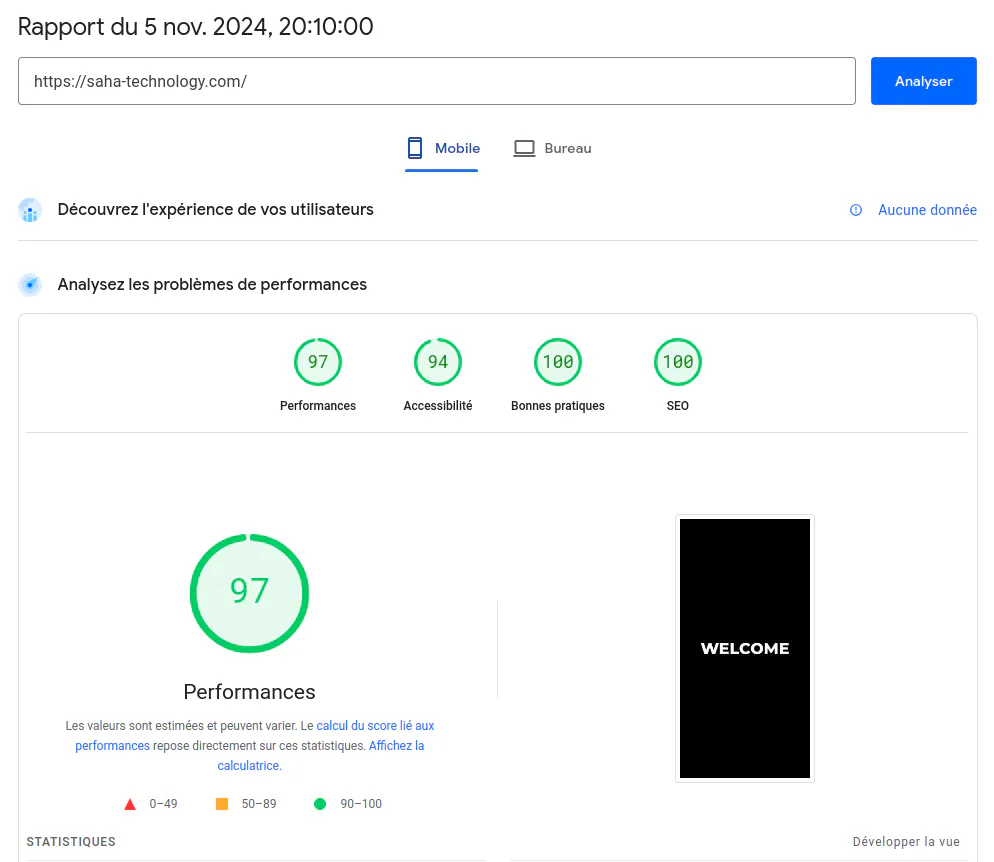 At SAHA Technology, we know that your website's Google PageSpeed score is crucial. A low score can impact your ranking and user experience. We offer a free website audit to help you enhance performance and engagement. You can explore our works if you still hesitate.