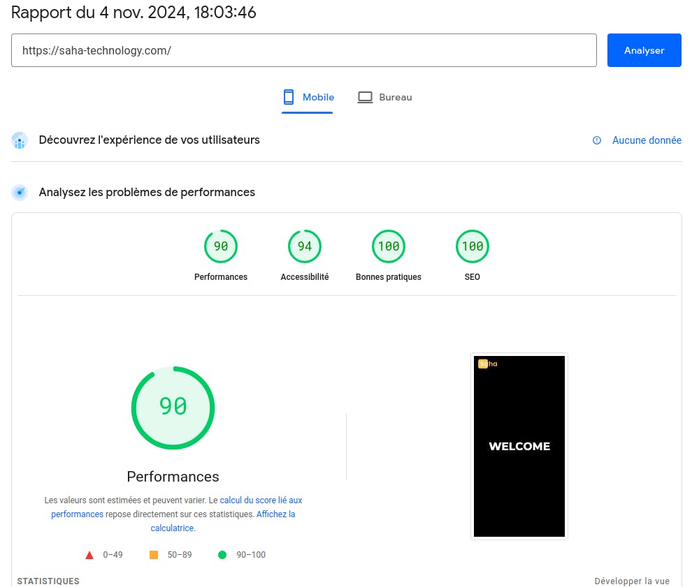 De toute façon, obtenir un score de 90 ou plus peut être difficile, en particulier sur les appareils mobiles en raison de divers facteurs tels que les conditions du réseau et les performances de l'appareil.